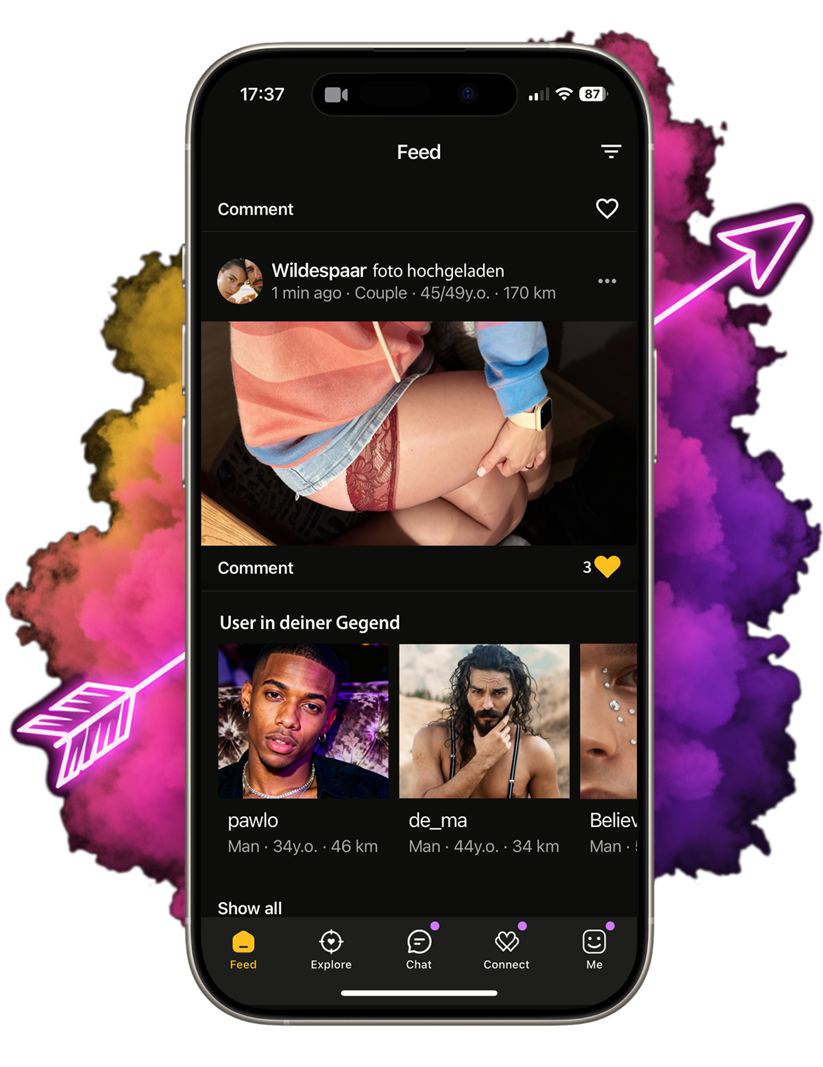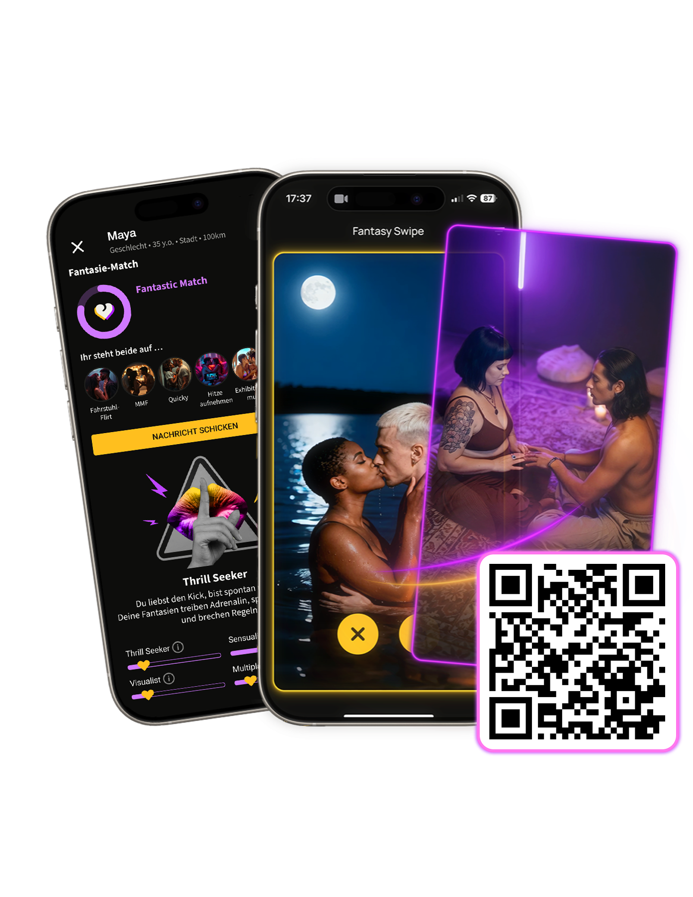 Eine Dating- und Social-App für Singles & Paare, wo Frauen führen und Fantasien den Ton angeben.